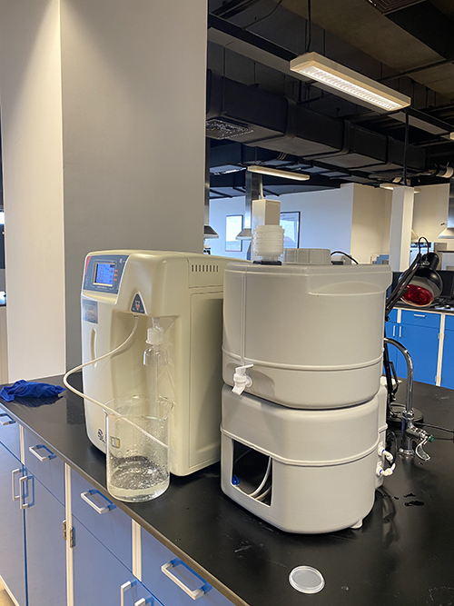 實驗室的空氣中含有使純水水質劣化的二氧化碳與浮游微生物,使用有機溶劑實驗室空氣中則含有揮發性有機溶劑。當空氣中的二氧化碳溶解于水中,會形成碳酸根離子,使水箱中純水的電阻率大幅降低,將造成超純水系統中陰離子交交換樹脂的負荷量增加,而縮短其使用壽命。除此之外,水箱中的純水若混入微生物與有機物質,也會造成微生物增殖和有機物質的再次污染。因此,純水水箱應呈密閉狀態,因為水箱必須設置通氣口使純水可以順利的流出,所以為了防止空氣中的污染物質透過通氣扣、口進入純水水箱內,加裝空氣過濾器是不可或缺的。