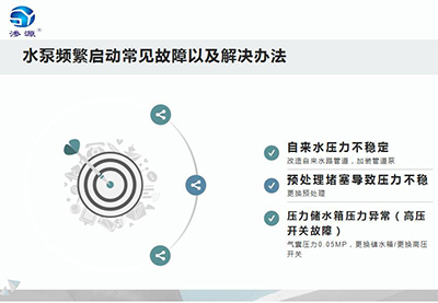 超純水機水泵啟動需要一定的進水壓力,當自來水管路出現停水或者水壓不足時,就會導致壓力不足水泵頻繁啟動的現象,需要加裝管道泵來增加壓力。